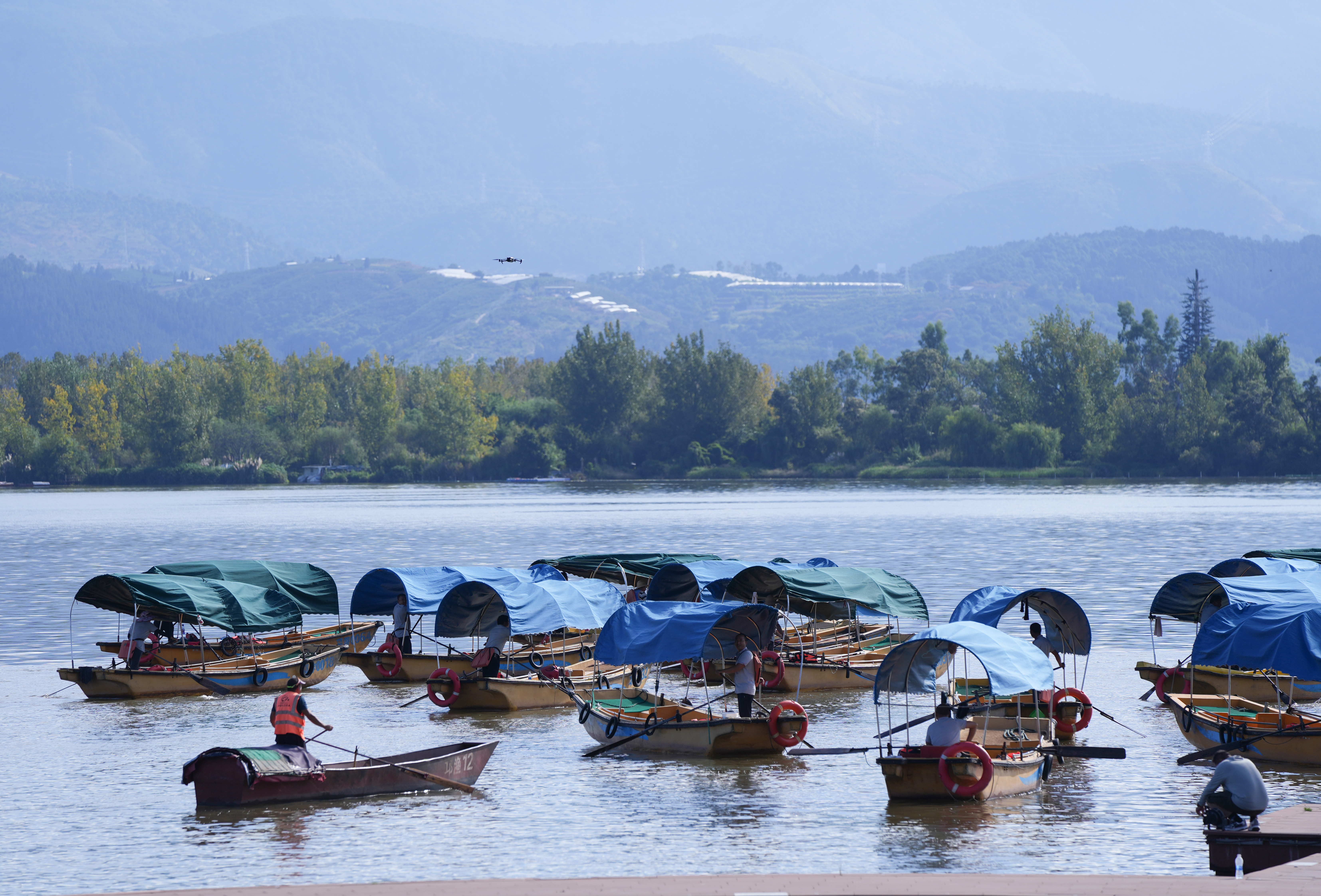 开海仪式上,渔民们身着传统服饰,手持渔网,虔诚地朝着邛海祈福。随后,一艘艘渔船在湖面上穿梭,渔网在阳光下闪烁,邛海里的鱼儿在水面中跳跃,绘成一幅生动的渔家画卷。