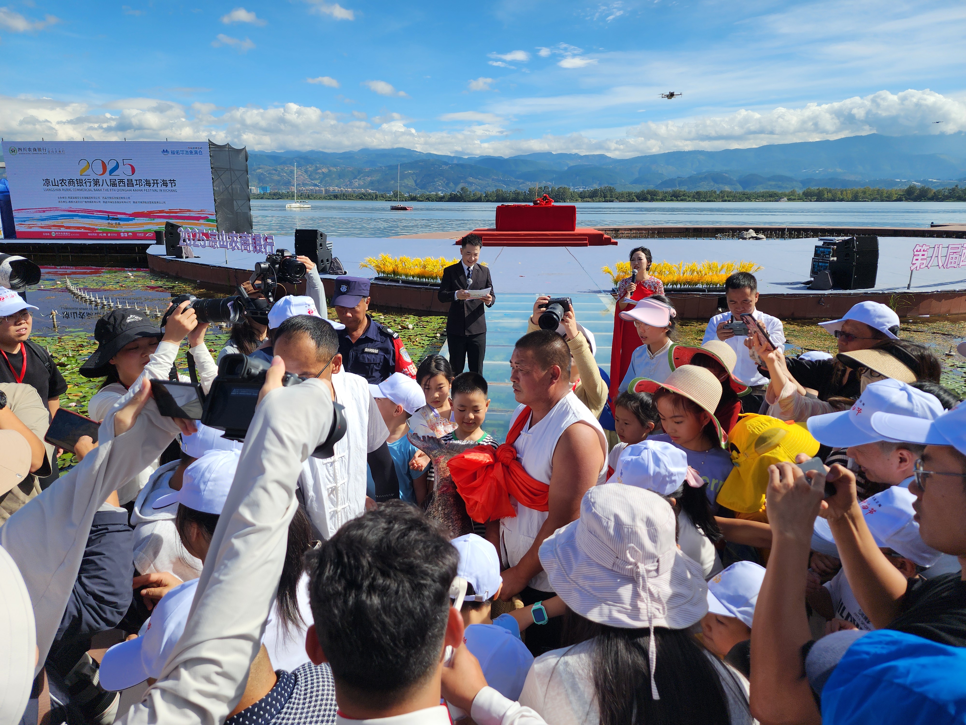 10月2日,2025年第八届西昌邛海开海节,在四川省凉山州西昌市邛海畔举行。活动现场,除了有传统的“祭海大典”、万人渔家宴等活动外,还“开”出了重达68.8斤的邛海“鱼王”,并现场拍卖出了8.8万元的价格。