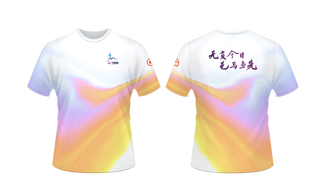服装设计采用炫彩粉渐变色,既跃动着马拉松的活力与激情,也呼应着江门清新、开放、多元的城市气质。正面饰以赛事专属LOGO,背面“无负今日 邑马当先”的主题口号跃然其上,这不止是一句标语,更是奔跑者的共同誓言。口号的力量与脚步的节奏同频共振,每一位跑友身披这份色彩与宣言,向世界展示一个青春昂扬、奋进不息的江门。